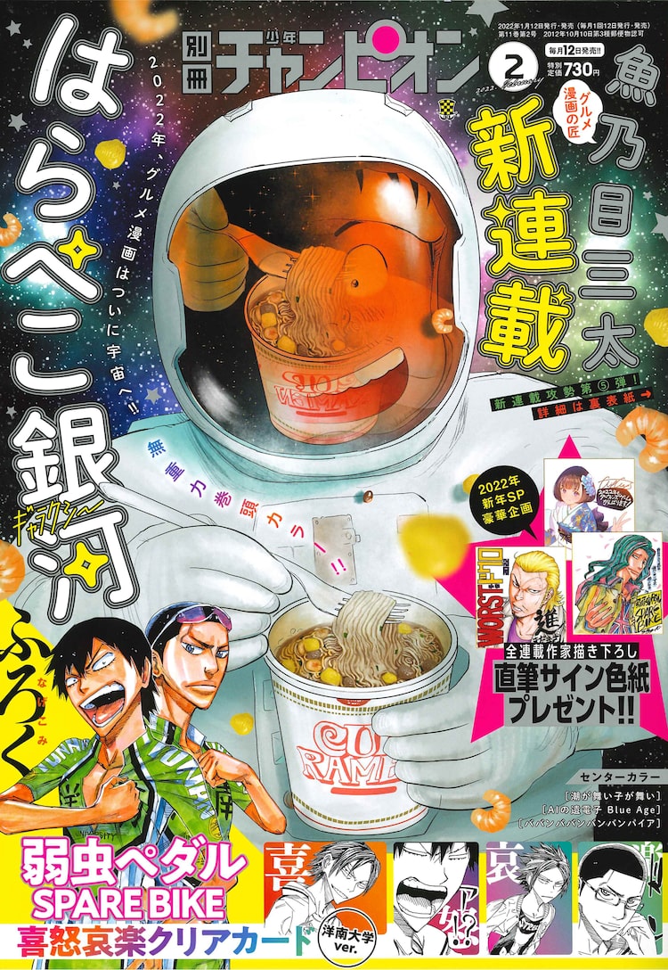 「戦争めし」で知られる魚乃目三太の新連載「はらぺこ銀河」が、本日1月12日発売の別冊少年チャンピオン2月号(秋田書店)で開幕した。