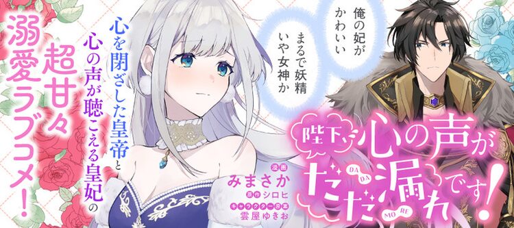 「陛下、心の声がだだ漏れです!」は、他人の心の声が聞こえるツィツィーが、傲岸不遜で冷徹な振る舞いから“氷の皇帝”と恐れられる皇帝・ガイゼルの意外な本心を聞いてしまう物語。ツィツィーを溺愛しながらも素直になれないガイゼルと、彼の赤裸々な心の声に戸惑うツィツィーの、政略結婚から始まるラブコメディが展開される。
