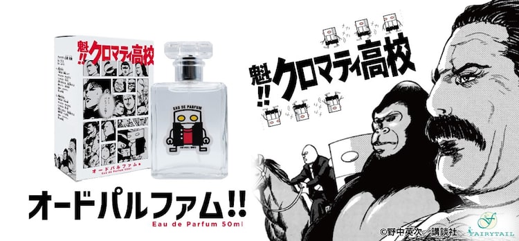 野中英次「魁!!クロマティ高校」のキャラクターをイメージしたフレグランス商品やグッズが、フェアリーテイルより発売された。