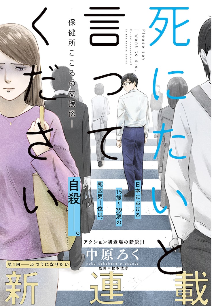松本俊彦監修による中原ろくの新連載「死にたいと言ってください―保健所こころの支援係―」が、本日4月19日発売の漫画アクション9号(双葉社)でスタートした。