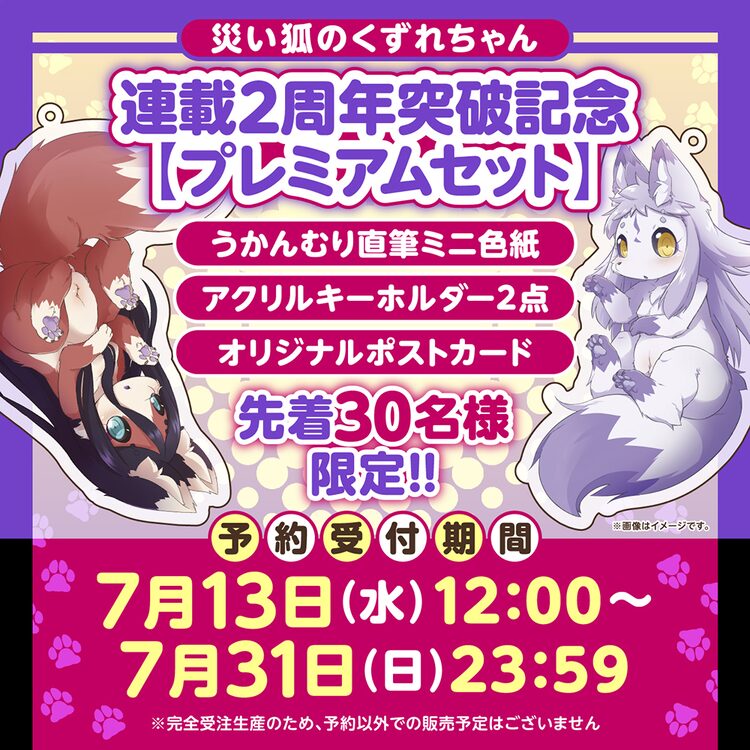 「災い狐のくずれちゃん」2周年記念の限定グッズが登場、4巻も同時発売
