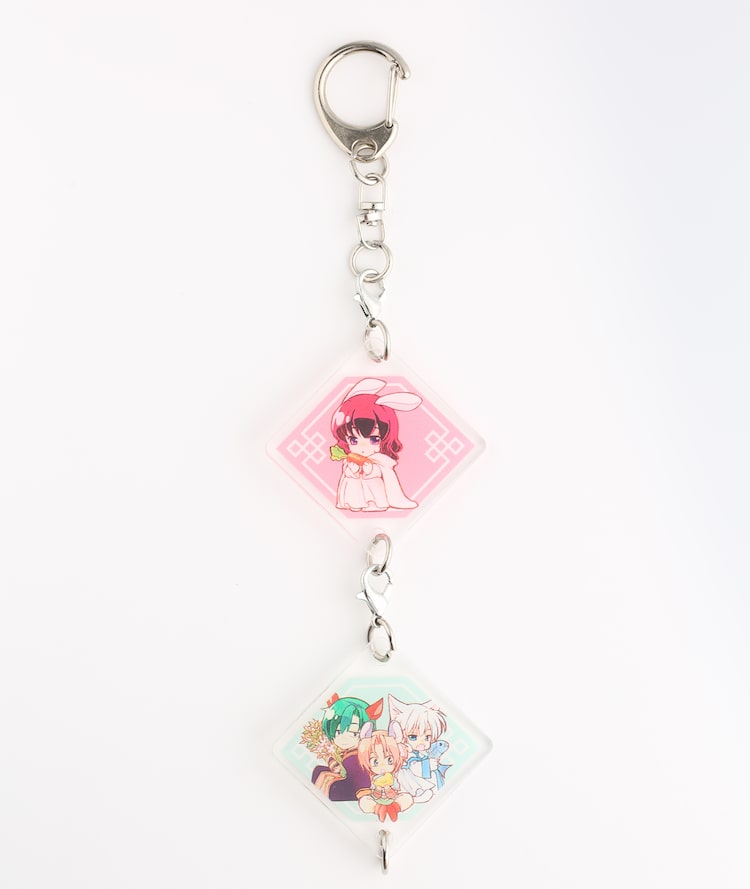 2連アクリルチャーム第1弾では、ヨナが描かれたチャームとジェハ・ユン・キジャの3人が揃ったチャームがセットに。10月5日発売の次号21号には、ハクのチャームとゼノ・シンアのチャームが付属する。20号と21号の付録は、4つつなげて使用することもできる。