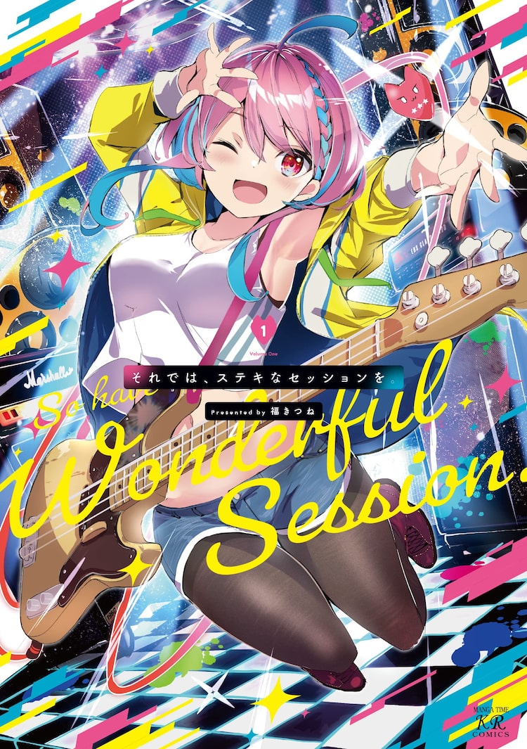 「それでは、ステキなセッションを。」の主人公は、バンドに所属せず現場を渡り歩くスタジオミュージシャンをしているベーシスト・是沢芽依。いろんな人と演奏を一緒にして経験値を積みたい芽依だが、練習では上手く弾けても本番では緊張でガチガチになってしまい、なかなか成果の出ない日々に落ち込んでいた。そんな彼女が、狐耳のお助け妖精・てんちゃんの勧めるガチャを引き、思い通りの演奏ができる「いい感じのピック(赤)」を手にしたことから物語は動き出す。同作はまんがタイムきらら(芳文社)で連載中。