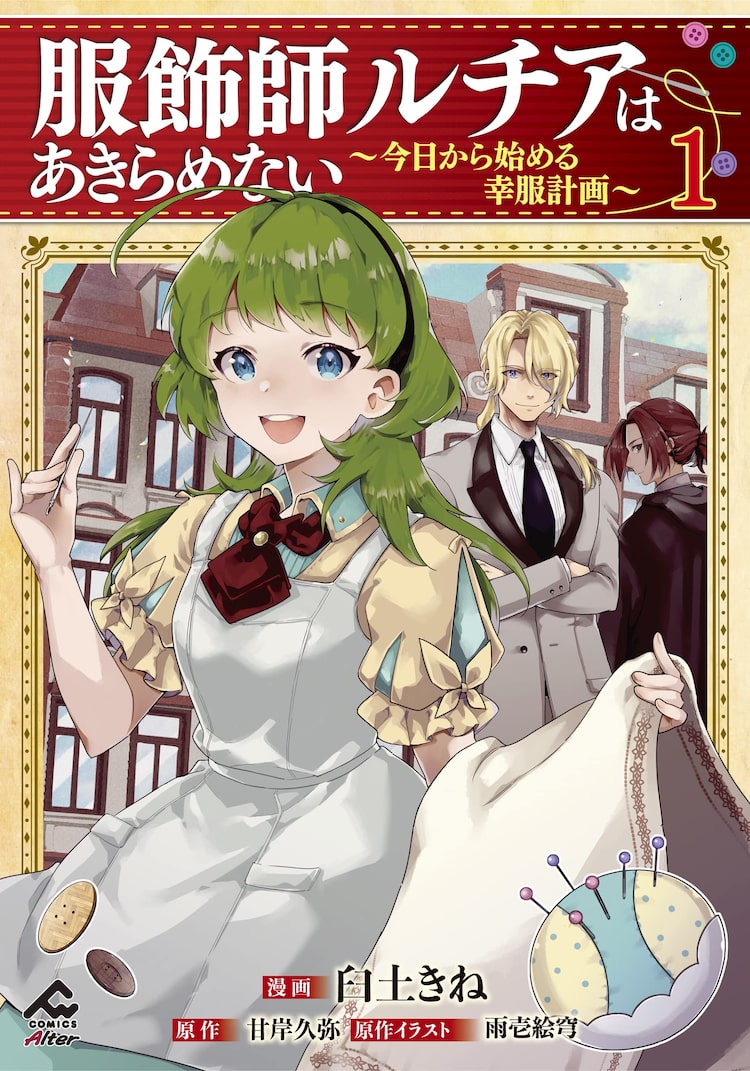 甘岸久弥原作による臼土きね「服飾師ルチアはあきらめない ~今日から始める幸服計画~」1巻が、本日11月18日に発売された。
