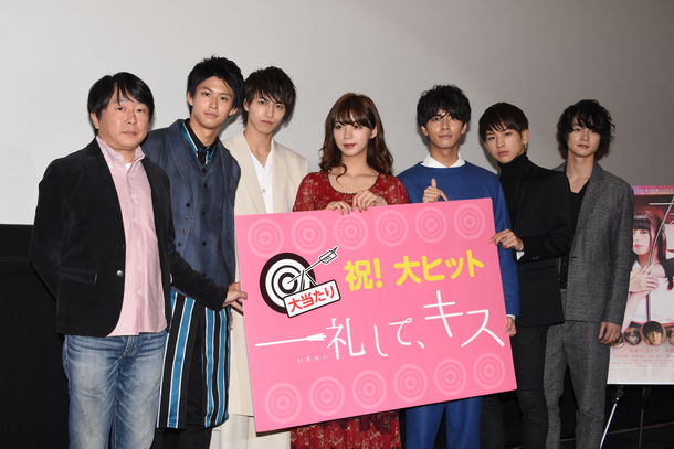 加賀やっこ原作による実写映画「一礼して、キス」の初日舞台挨拶が、本日11月11日に東京・新宿バルト9で行われた。