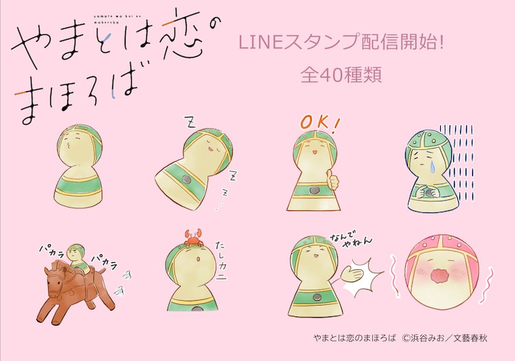 「やまとは恋のまほろば」は大学の古墳研究会に所属する主人公・三和穂乃香が、サークルでの活動を通して恋をし成長する物語。おたけやんは古墳をモチーフにしたキャラクターで、作中で穂乃香と古墳研究会の同級生・飯田くんがおたけやんスタンプを使っている。LINEスタンプの絵柄は40種類。浜谷は「おたけやんスタンプをリアルで使える日が来るなんて……! 皆さんにもぜひご愛用いただけると嬉しいです!」とコメントした。