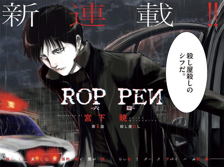 「東独にいた」宮下暁が“殺し屋殺しの男”をスピリッツ描く「ROPPEN-六篇-」 2022年12月26日2022年12月26日 editor 「ROPPEN-六篇-」扉ページ「東独にいた」の宮下暁による新連載「ROPPEN-六篇-」が、本日12月26日発売の週刊ビッグコミックスピリッツ2023年4・5合併号(小学館)で開幕した。 「ROPPEN-六篇-」はテロ国家として安全保障上の脅威となっている六篇法国出身の、殺し屋殺しの男・シフを主人公に描く物語。その名の通り、裏の世界で暗躍する殺し屋たちをターゲットとするシフが、第1話では殺し屋の立てこもり事件の任務に向かう。 (c)宮下暁/小学館 関連記事「楽園追放」続編キャストに佐倉綾音、早見沙織、青山吉能、天城サリー 来年11月公開「ヒロアカ」最終回を山下大輝らと映画館で見届けよう!リアルタイム上映&全話上映実施私には見える、温厚そうな彼のヤバいオーラが…無愛想なOL&裏のある男のオフィスラブアニメ「勇者のクズ」花守ゆみりがセーラ役に、先行上映会にも登壇いがらしみきおが子供の質問に答えるエッセイ書籍化、「友達は必要?」困る質問が続出アラサー女子が忘れていた夢を思い出す…ピアニストを夢見る年下男子と同棲物語 Tweet 関連コミック 東独にいた ROPPEN-六篇-