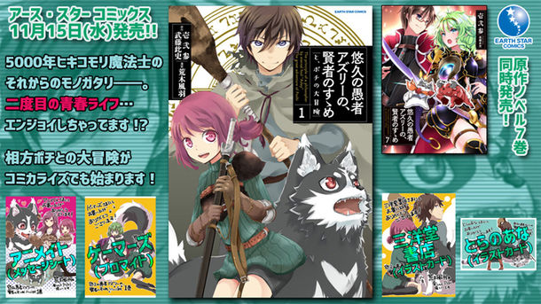 壱弐参原作による荒木風羽「悠久の愚者アズリーの、 賢者のすゝめ―と、ポチの大冒険―」1巻が、本日11月15日に発売された。小説を元にしたコミカライズ作品で、連載はコミックアース・スター(アース・スター エンターテイメント)にて行われている。