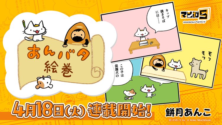 餅月あんこの新連載「あんバタ絵巻」が、本日4月18日にWebマンガサイト・マンガ5でスタートした。