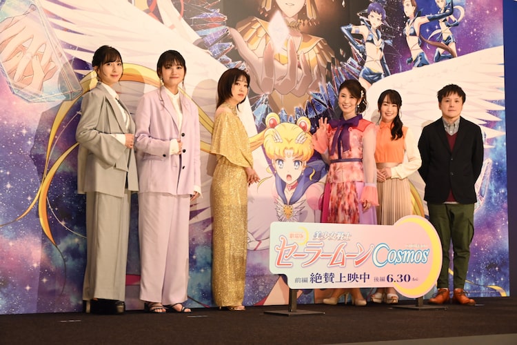 武内直子原作によるアニメ「劇場版『美少女戦士セーラームーンCosmos』」前編の公開記念舞台挨拶が、本日6月10日に東京・丸の内TOEIで開催された。イベントにはエターナルセーラームーン/月野うさぎ役の三石琴乃、セーラーギャラクシア役の林原めぐみ、セーラー火球/火球皇女役の水樹奈々、セーラースターメイカー/大気光役の早見沙織、セーラースターヒーラー/夜天光役の佐倉綾音、高橋知也監督が登壇。前編のアフレコを実施してから、約2年越しとなる公開を迎えた心境や、アフレコ時のエピソードなどが語れらた。