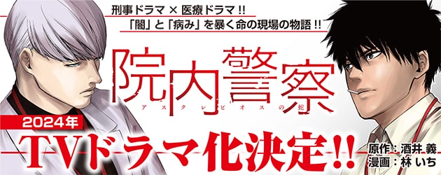 酒井義原作による林いち「院内警察~アスクレピオスの蛇~」が2024年にTVドラマ化する。