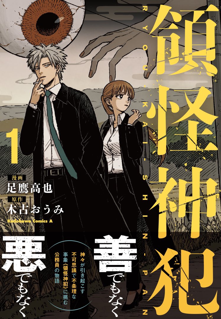 同作は、神々が引き起こす不可思議で不条理な事象・領怪神犯に挑む公務員たちの物語。第1章「ひとつずつ降りてくる神」では、領怪神犯特別調査課の片岸と宮木が、毎年同じ時期に「大きな身体の一部」が空から降ってくるという村を調査する。実際に巨大な耳が降って来る現場に遭遇した2人は、村で保管されていたさまざまな「大きな身体の一部」を見て、とある事実に気が付く。1巻にはそのほか第2章「ひと喰った神」と第3章「不老不死の夢の神【前編】」が収録されている。