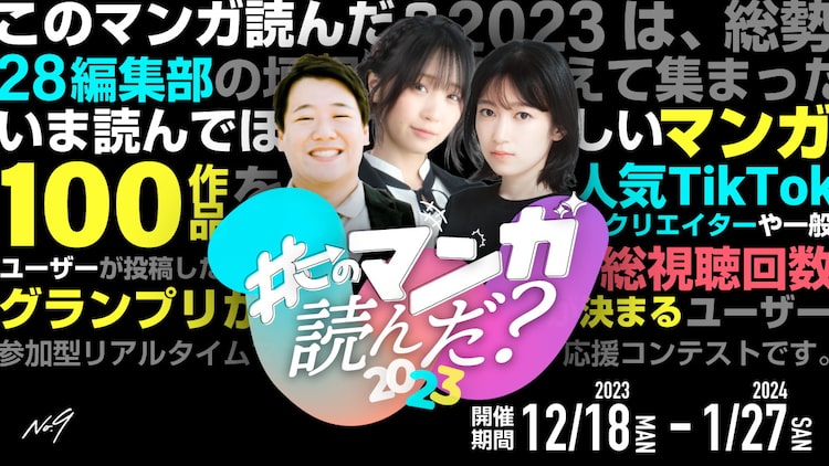 ユーザー参加型のマンガ応援コンテスト「このマンガ読んだ?グランプリ」が誕生。12月18日から2024年1月27日にかけて、TikTokを中心に展開される。