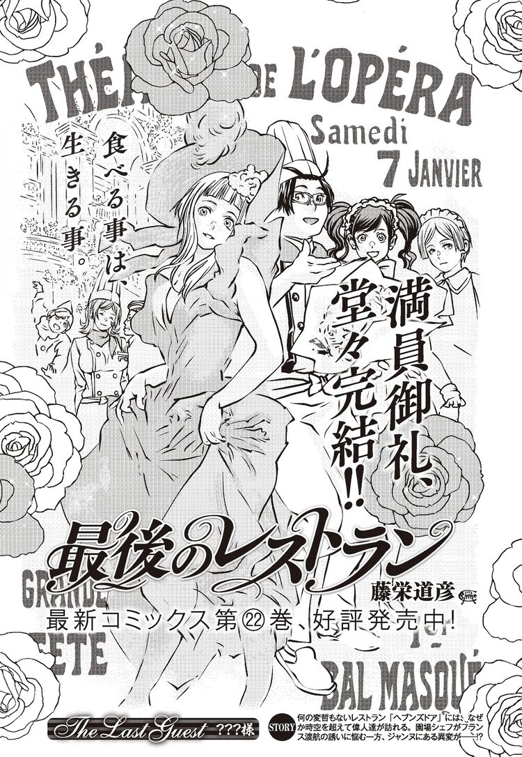 2011年に連載開始された「最後のレストラン」は、死期を迎えた歴史上の偉人たちが、なぜかタイムスリップしてやってくる不思議なレストランが舞台。シェフの園場は偉人たちをもてなすうちに意図せず有名になってしまい、ついにフランスの有名店から誘いを受けた。一方、店を訪れ、そのまま店員として居ついてしまったジャンヌ・ダルクに異変が起こり……。単行本の最終23巻は6月発売予定だ。