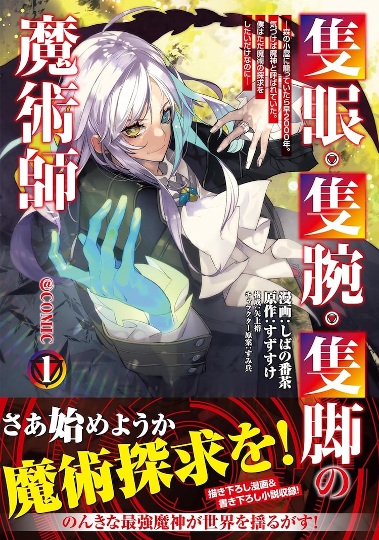 しばの番茶「隻眼・隻腕・隻脚の魔術師@COMIC ~森の小屋に籠っていたら早2000年。気づけば魔神と呼ばれていた。僕はただ魔術の探求をしたいだけなのに~」1・2巻が、本日3月15日に同時発売された。