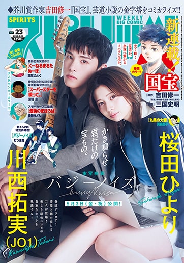 なお、むつき潤原作による実写映画「バジーノイズ」は明日5月3日に公開される。週刊ビッグコミックスピリッツ23号の巻頭には、清澄を演じる川西拓実(JO1)と潮を演じる桜田ひよりのグラビアが掲載された。