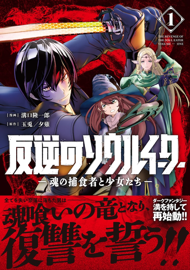 「反逆のソウルイーター -魂の捕食者と少女たち-」は、無能の烙印を押されすべてを失った男・御剣空が復讐者となるダークファンタジー。剣聖を祖とする武門の家に生まれるも才能がなく勘当された空は旅に出るが、故郷から遠く離れた地・イシュカの街でも結果を出せずにいた。どんなに努力をしてもレベルが上がらず、一緒に仕事をしていた仲間からも「低位階の冒険者が上位に紛れて甘い汁をすする」「寄生者(パラサイト)」と罵られ、冒険者資格を剥奪されてしまう始末。そんな空が命の危機に瀕したとき“魂喰いの竜”の力に覚醒する。