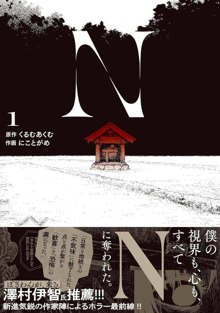 行方不明、殺人事件、死亡事故、現場に共通して残される謎の「N」を追うホラー作品 2024年6月26日2024年6月26日 editor 「N」1巻(帯付き)くるむあくむ原作、にことがめ作画「N」1巻が本日6月26日に発売された。帯には「ぼぎわんが、来る」で知られるホラー小説家・澤村伊智が推薦文を寄せている。 同作は、都市伝説「N」を巡るホラー作品。男子中学生5人の行方不明事件、小学校の参観日に起きた1クラス惨殺事件、自動車暴走による2人死亡事故、一連の現場に残された「N」の文字からそれらの事件にはとある関連性が浮かび上がる。 関連記事「僕ヤバ」市川京太郎の姉・香菜が本日誕生日、描き下ろしビジュアル&映像公開三国志の悪役、董卓の肥満体はどうできた?暴喰コメディ「三国志凶漢伝」1巻発売16世紀のオスマン帝国で働く人々の群像劇「三日月の国 オスマン千夜一夜」1巻発売「名探偵コナン エピソード“ZERO” 工藤新一水族館事件」放送は来年1月3日アニメ「花ざかりの君たちへ」YOASOBIのOP・ED聴けるPV公開、追加キャストに日野聡「シンデレラ」のモデルになった史実に基づく、悪女と王女の対立劇 Tweet 関連コミック N ぼぎわんが、来る