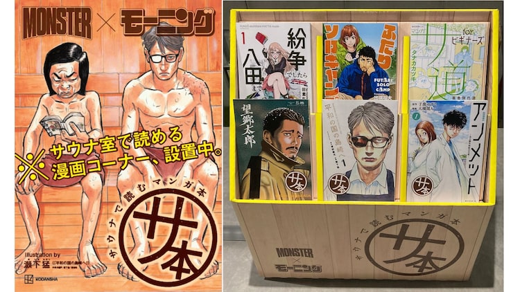 モーニング(講談社)のマンガをサウナで読めるイベント「サ本 MONSTER×モーニング」が、本日7月3日から9月末まで東京・MONSTER WORK & SAUNAで開催される。