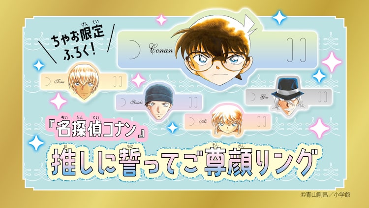 青山剛昌「名探偵コナン」の付録「推しに誓ってご尊顔リング」が、本日7月3日発売のちゃお8月号(小学館)に付属している。