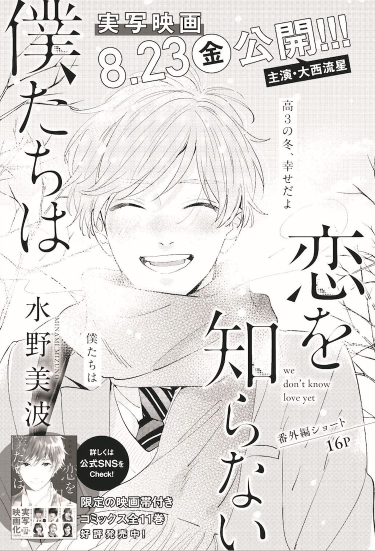 8月23日に実写映画が公開される「恋を知らない僕たちは」。番外編では高3の冬、それぞれの未来に向かって進んでいくカップルたちの姿が描かれている。また表紙には、映画で主演を務める大西流星(なにわ男子)が登場。紙版には大西の特大ピンナップが付属し、映画で共演する窪塚愛流、猪狩蒼弥(HiHi Jets)との鼎談も掲載された。