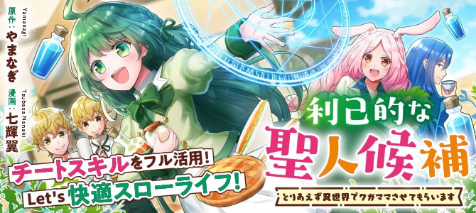 やまなぎ原作による七輝翼「利己的な聖人候補 とりあえず異世界でワガママさせてもらいます」の連載が、約3年半ぶりにアルファポリスで再開した。
