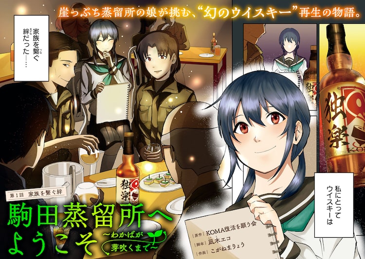 同作は、劇場版アニメ「駒田蒸留所へようこそ」の前日譚を完全オリジナルエピソードで描くコミカライズ作品。ウイスキー蒸留所の娘として育った主人公・駒田琉生が、経営難からバラバラになってしまった家族を取り戻すため、幻のウイスキー「独楽」の復活を目指す姿が描かれる。
