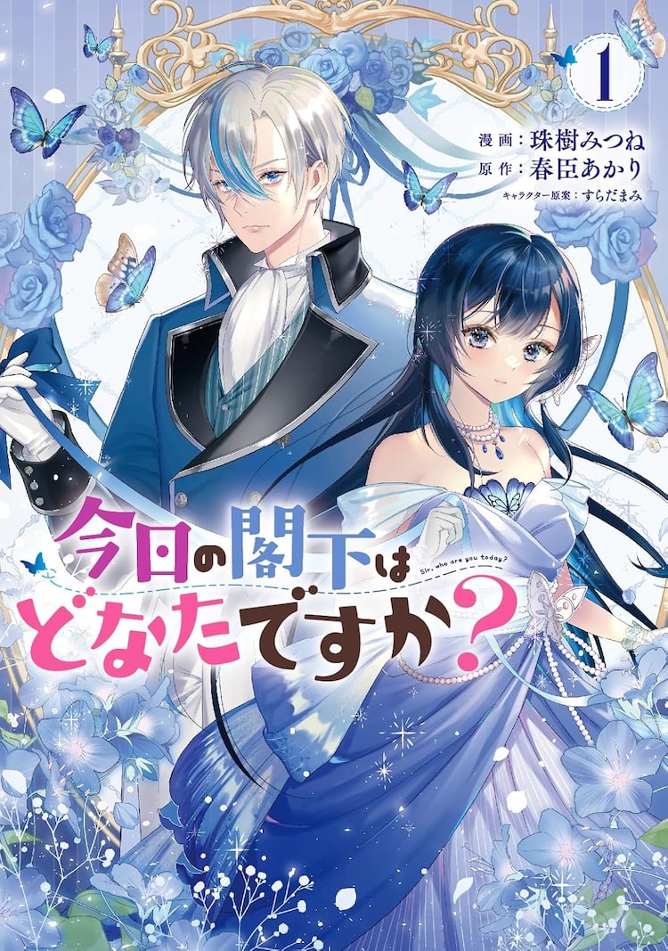 「今日の閣下はどなたですか?」の主人公は、どんな相手にもなびかない孤高の美しさから「黒い宝石」のあだ名が付けられた伯爵令嬢・アルマ。その本性は、お酒を飲んでゴロゴロしているのが好きな「干物令嬢」で、趣味の昆虫観察になぞらえて社交界での自分の姿は「擬態」なのだと彼女は自称していた。そんな彼女が婚約したコンラート・エヴァハルト公爵は気難しい性格と噂だったが、その誠実な人柄にアルマは惹かれていく。しかしプロポーズを受けた次の瞬間、彼は別人のような性格に変貌。1人の男性を相手にしながら逆ハーレムラブコメ的展開を見せる、多重人格の公爵との恋愛が描かれる。