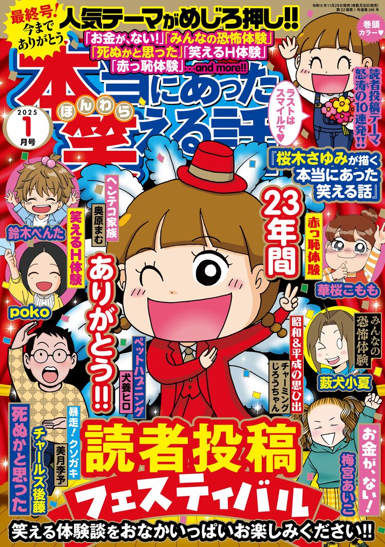 本当にあった笑える話(ぶんか社)が休刊。本日11月29日発売の2025年1月号で最終号を迎え、23年の歴史に幕を下ろした。