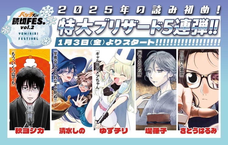 新潮社のWebマンガ誌・コミックバンチKaiが「バンチKai読切FES. Vol.2」を予告。2025年1月3日から5週連続で読み切りマンガが公開される。