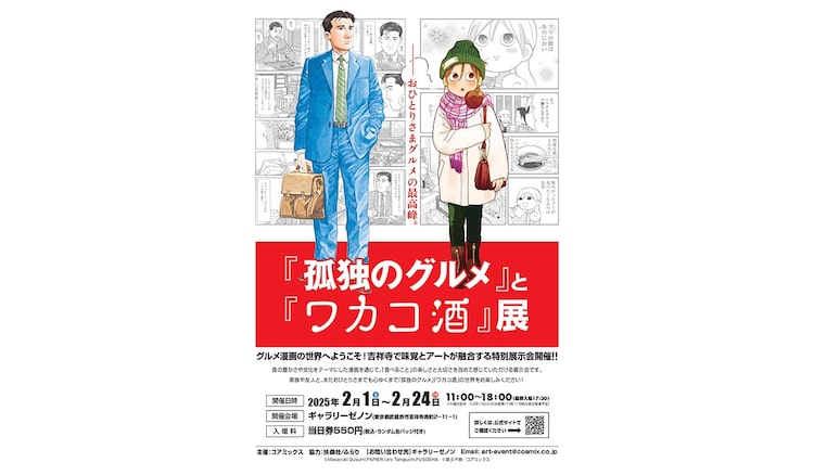 久住昌之原作、谷口ジロー作画による「孤独のグルメ」と、新久千映「ワカコ酒」の合同展示イベントが、2月1日から24日まで東京・ギャラリーゼノンで開催される。