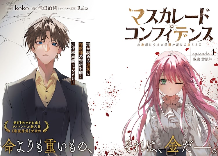 滝浪酒利によるライトノベル「マスカレード・コンフィデンス 詐欺師は少女と仮面仕掛けの旅をする」のコミカライズ連載が、本日2月27日発売の月刊コミックアライブ4月号(KAODKAWA)でスタートした。マンガの執筆はkokoが手がける。