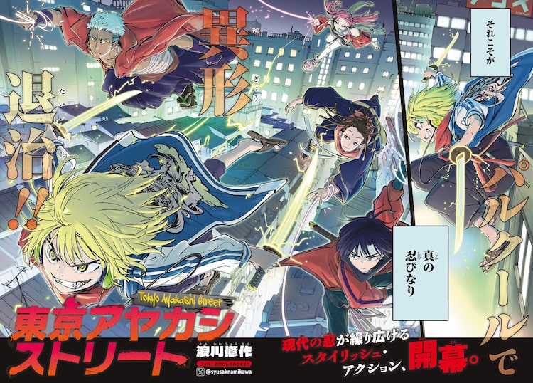 「東京アヤカシストリート」は、妹の治療費のために日々奔走するストリートチルドレン・ハヤトを描くアクションファンタジー。妹のひまりの治療費を稼ぐため、新宿の街を奔走していたハヤトは、ある日、巨大な異形・妖(あやかし)と対峙する少年と出会う。奇妙な能力を使うその少年に驚くハヤト。さらにひまりが入院する病院を襲う妖に、ひまりが攫われてしまい……。大事な妹と自分が生きる街を守るため、ハヤトは忍者と妖の戦いに戦いに身を投じていく。