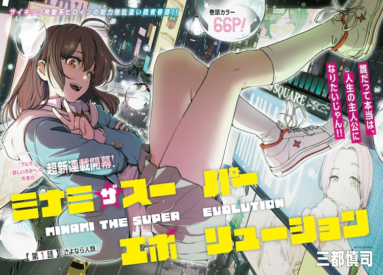 本日3月18日に発売されたウルトラジャンプ4月号(集英社)で、「アルマ」「新しいきみへ」の三都慎司による新連載「ミナミザスーパーエボリューション」がスタートした。