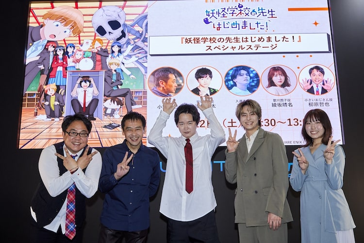田中まい原作によるTVアニメ「妖怪学校の先生はじめました!」のイベントステージが、去る3月22日に開催された「AnimeJapan 2025」で行われ、安倍晴明役の逢坂良太、入道連助役の高野洸、歌川国子役の綾坂晴名、小さいおじさん役の柳原哲也、小野勝巳監督が登壇した。