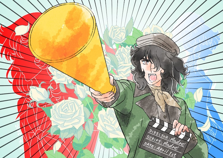 池田理代子原作による劇場アニメ「ベルサイユのばら」より、エイプリルフール企画としてメガホンを持ったアンドレの監督姿のイラストが公開。アンドレが監督・脚本だったと打ち明けるコメントも到着した。