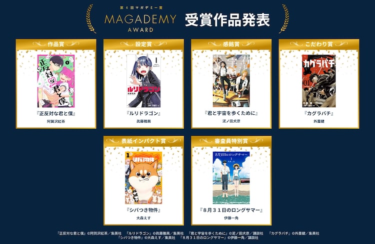 マンガの楽しみ方を拡げるアワード「第4回マガデミー賞」の受賞作品が発表された。