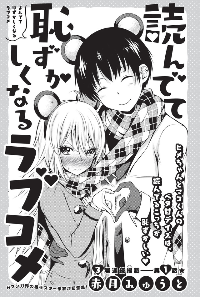 「読んでて恥ずかしくなるラブコメ」は、ヤンキー気質の大学生・姫と穏やかな彼氏・誠のベタ甘な日々を紡ぐラブコメディ。第1話では「お互いのいい所を10個褒め合う」というゲームに興ずる2人のイチャイチャが描かれた。なお赤月がヤングアニマルにて執筆したのは今回が初めて。