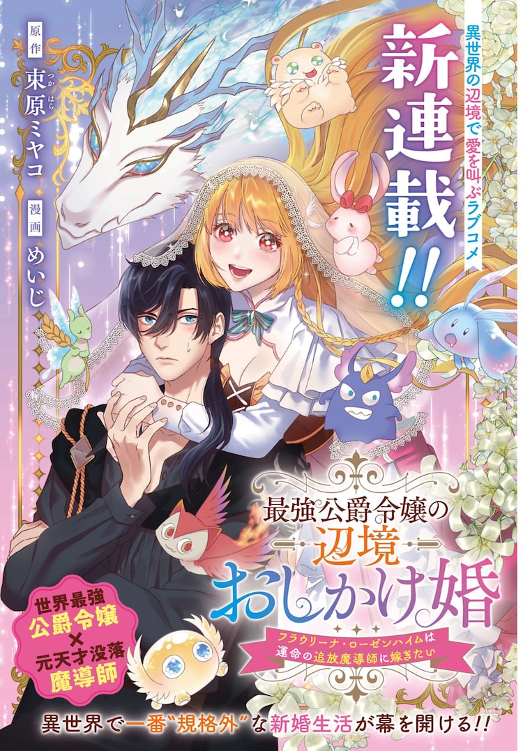 めいじの新連載「最強公爵令嬢の辺境おしかけ婚 フラウリーナ・ローゼンハイムは運命の追放魔導師に嫁ぎたい」が、本日8月25日発売の月刊コミックゼノン10月号(コアミックス)で開始した。