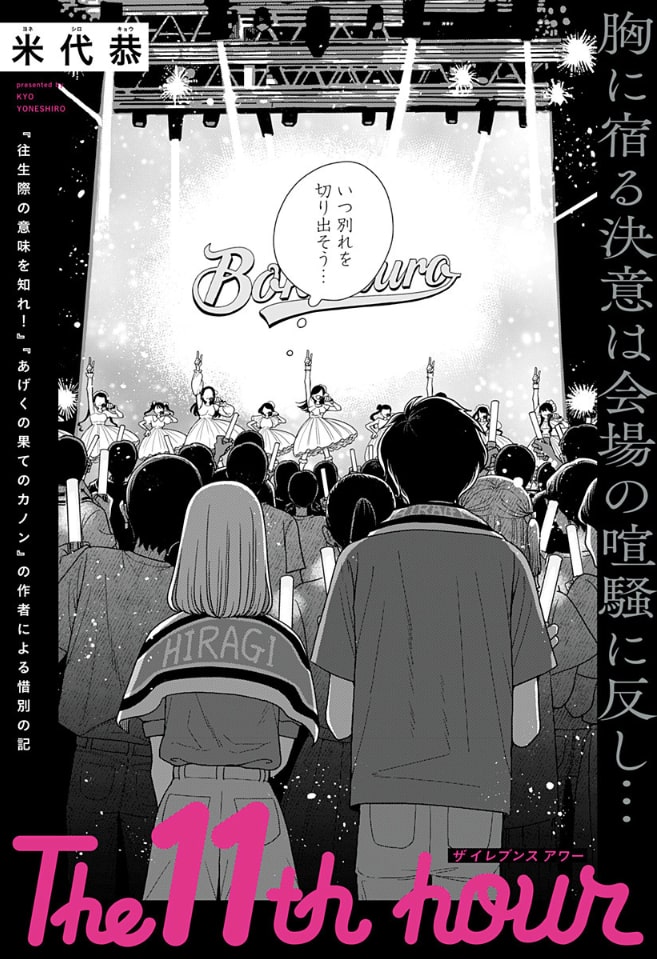 「The 11th hour」は、アイドルを通じて知り合ったカップルの物語。ともに推すアイドルグループの解散をきっかけに、ある選択をする女性の思いが描かれる。これは少年ジャンプ+11周年を記念して、少年ジャンプ+初登場作家陣による11ページの読切を11作配信する企画の第2弾で、明日10月13日には、田島青「5回目のふたり」が掲載される。