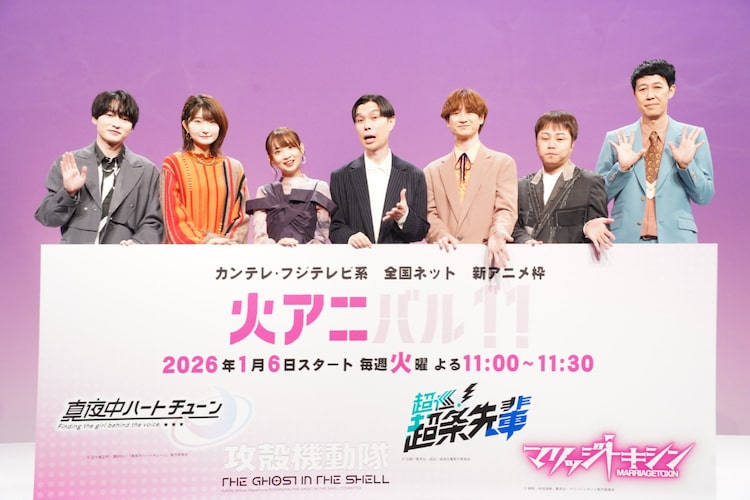 「火アニバル!!」は、この会見で新設されることが発表された、火曜23時から23時30分までのアニメ放送枠。1作目の「真夜中ハートチューン」が2026年1月6日より放送され、以降「攻殻機動隊 THE GHOST IN THE SHELL」「超巡!超条先輩」「マリッジトキシン」が放送される。