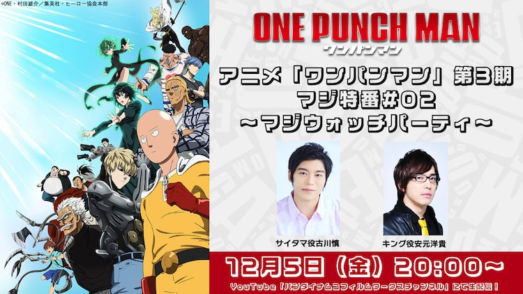 「ワンパンマン」特番をYouTubeで配信、古川慎&安元洋貴と最新話を同時視聴