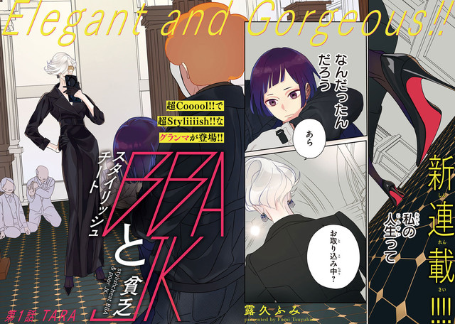 「スタイリッシュチートBBAと貧乏JK」は、貧乏女子高生と謎の最強老婦人を描くハートフルストーリー。失踪した父の代わりに借金返済を続けてきた女子高生・黒澤アキラは、ある日銀行強盗に遭遇する。銀行強盗から人質に取られ、絶望するアキラの前に、クールでスタイリッシュな老婦人が颯爽と登場し……。本作は露久が自身のTwitterなどで発表し話題を集めた作品だ。