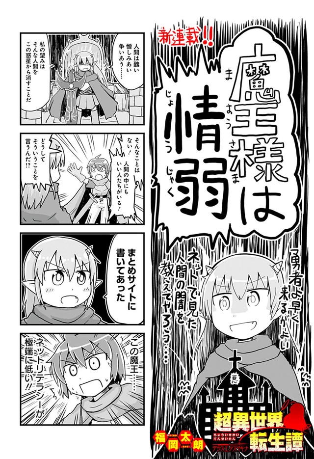 同作は異世界転生を題材に描くオムニバス4コマ。現在第2話までを公開しており、インターネットに毒されてしまった魔王とその魔王を討伐に訪れた勇者や、父親から忍者の家系だと明かされた高校生のエピソードが掲載されている。なお本作は1カ月間の集中連載となっており、毎日最新話が更新されていく。
