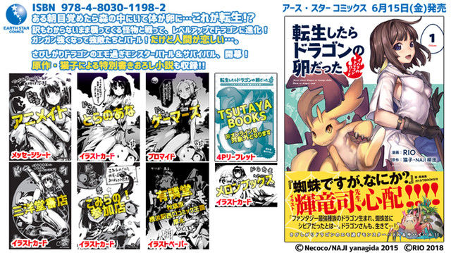 猫子・NAJI柳田原作によるRIO「転生したらドラゴンの卵だった ~イバラのドラゴンロード~」1巻が、明日6月15日に発売される。