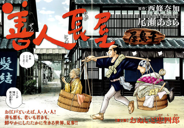 「どうらく息子」の尾瀬あきら、西條奈加による小説「善人長屋」のマンガ版描く 2018年6月20日2018年6月20日 editor 「善人長屋」扉ページ「どうらく息子」の尾瀬あきらによる新連載「善人長屋」が、本日6月20日発売のビッグコミックオリジナル13号(小学館)にて始動した。 西條奈加の同名小説を原作とした「善人長屋」。物語は善人ばかりが住むと評判の“善人長屋”に新たな店子がやってくるところから始まる。実は裏の稼業を営むものばかりが集まる長屋に現れた男の正体とは。なお今号には太田基之による読み切り「高梨さん ~三つのおむすびの巻~」も掲載されている。 関連記事「無限ガチャ」に小西克幸、金元寿子ら出演 エルフ女王国との戦い収めた新PV「天使のたまご」4Kリマスターは「親としての責任」、押井守が制作当時振り返る「果てしなきスカーレット」新ビジュアル公開 内山昂輝、種﨑敦美らの出演も明らかに芸能人の幼なじみとの溺愛ラブコメディ「私の幼馴染はなにかおかしい」1巻“ケダモノ王子”との甘くて危険な偽りの婚姻譚「獣王子の偽恋花嫁」1巻おじいちゃん、ダンジョンで配信して!孫のために配信して大バズりする探索者の物語 Tweet 関連コミック どうらく息子 善人長屋