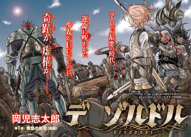 「デゾルドル」は14世紀のヨーロッパを舞台に、傭兵として生きる運命を背負ったヒロイン・ルーヴと、彼女が出会った乙女(ラ・ピュセル)を描くジャンヌ・ダルク異聞録。初回はカラー付き94ページで一挙2話が掲載された。