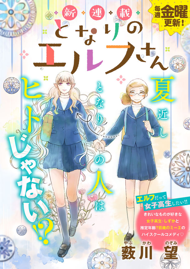 同作はきれいなものが好きなメガネ女子高生・しずかと、美少女エルフのミーエを描くハイスクールコメディ。第1話では編入生としてしずかの隣の席にやってきたミーエが、エルフならではの行動を繰り広げる様子が描かれた。なお連載は今後、毎週金曜日に更新されていく。