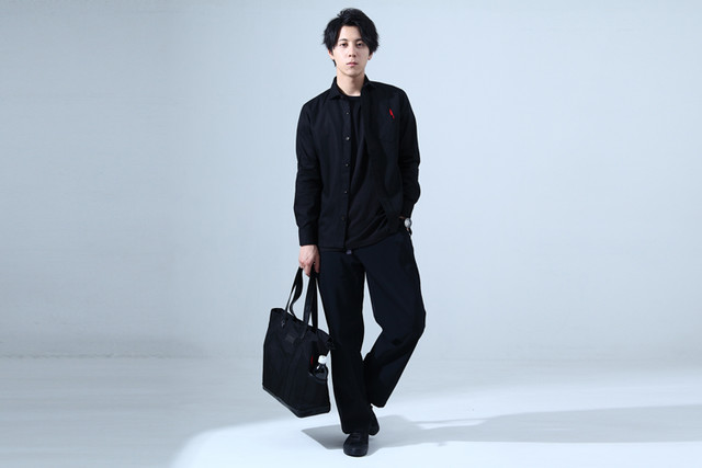 シャツは「STEINS;GATE 0」での岡部倫太郎の服装をイメージしたブラックカラーで、胸ポケットに差している赤ペンを刺繍で再現。スマートフォンケースは岡部の使用するスマートフォンをイメージしており、ダイバージェンスメーターの数字やラボメンバッジのマークがあしらわれている。