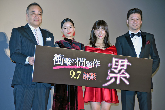 松浦だるま原作の実写映画「累 ―かさね―」の初日舞台挨拶が、昨日9月7日に東京・TOHOシネマズ日比谷で行われた。
